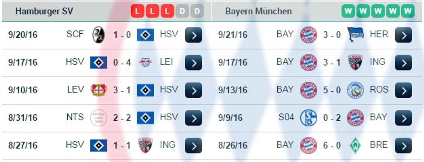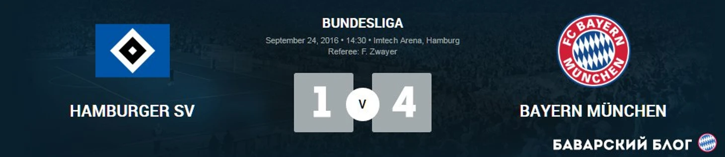 Завтра, 24 сентября состоится пятый тур немецкой Бундеслиги, "Бавария" едет в Гамбург."Бавария" которая еще не проигрывала и "Гамбург" который еще не выигрывал в этом году.Перед этим матчем "Баварский Блог" решил показать вам историю встреч этих команд в Бундеслиге."Баварский Блог" показывает вам положение команд на таблице:"Бавария" под руководством Карла Анчелотти не проигрывает в Бундеслиге и Лиги Чемпионов. Бавария "папы Карло" забивает очень часто, в таком матче как Гамубрг - Бавария определенно можно ставить на то, что голов будет много."Гамбург" же, наоборот, не выигрвал еще в этом сезоне Бундеслиги на его счету 1 очко в чемпионате и 16 строчка в таблице. Последние 5 встреч этих клубов:"Гамбург" показывает ужасные результаты: 9 пропущенных мячей и всего 2 забитых. "Бавария" в Бундеслиге продолжает идти сметая всех на своем ходу: 14 забитых голов и 1 пропущенный мяч. Главным бомбардиром в Бундеслиге является именно игрок "Баварии" Роберт Левандовски. На его счету 5 забитых голов в 4ёх матчах лиги.Ориентировочные составы на матч: "Баварский Блог" решил взять на себя отвественность и предугадать исход встречи. Прогноз "ББ" на этот матч таков - можете смело ставить Тотал матча 3,5Б или попытать свою удачу и угадать точный счет встречи.Наш прогноз:Главная особенность "Баварского Блога" в краткости излагаемого материала.