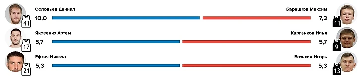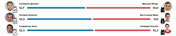 По подборам у «Восток-65» выделяется Даниил Соловьёв (10), а у «Химки-Подмосковье» Максим Барашков (7.3).