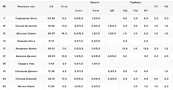 Виталий Ионов – 18.3 мин, 8.7 очков