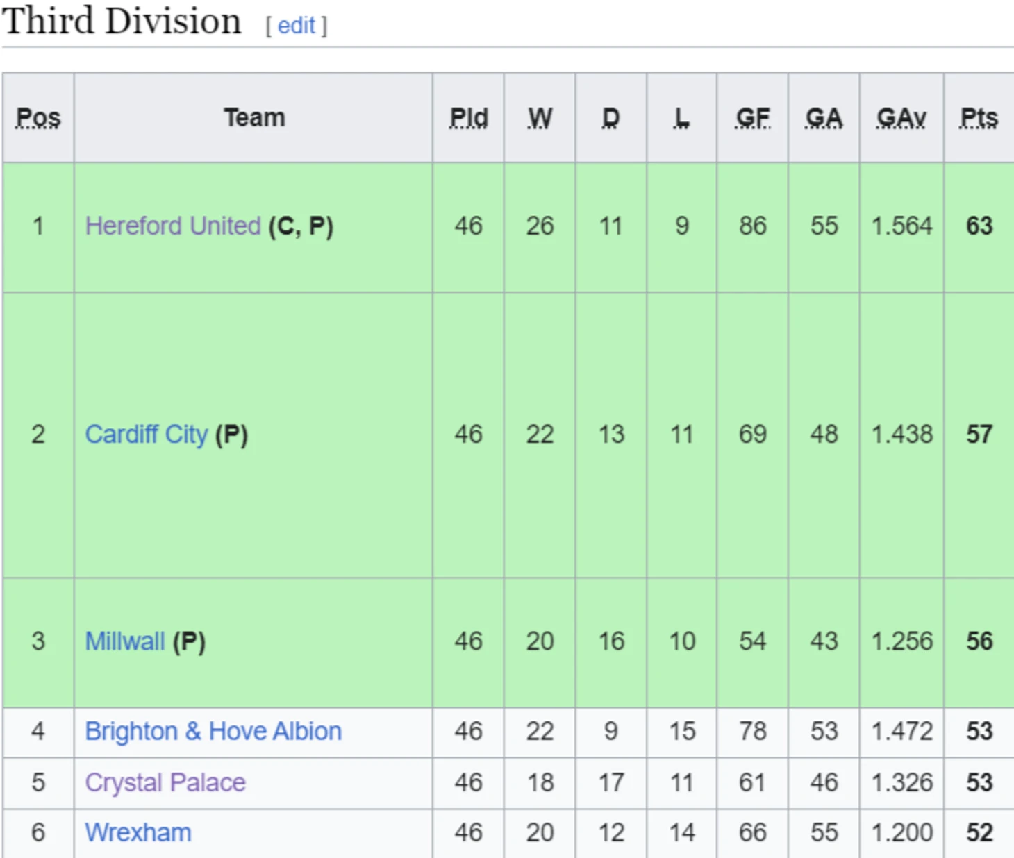 Турнирная таблица третьего дивизиона в сезоне 1975/76