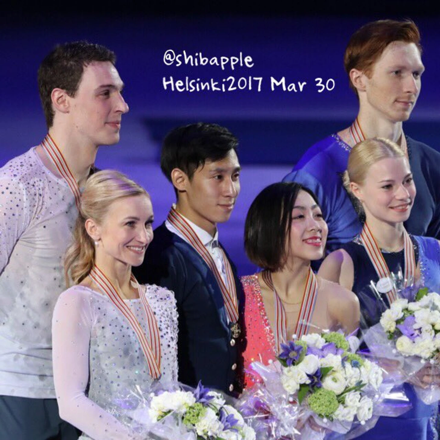 Евгения Тарасова, в паре с Владимиром Морозовым завоевавшая бронзовые медали чемпионата мира в Хельсинки, во флэш-интервью подчеркнула, что во второй день соревнований каталась на морально-волевых качествах. На разминке перед короткой программой получила травму, ей наложили десять швов.