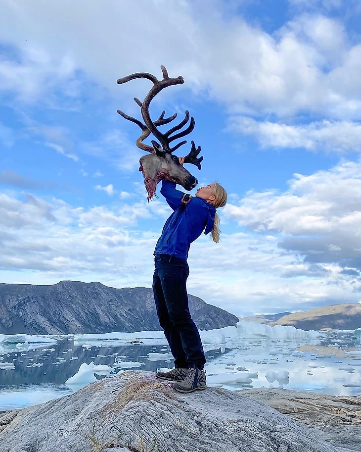 >> За день до того, как мы вернулись домой, у нас было только четыре оленя и заяц — что по-гренландски называется ukaleq (улыбается) — а в идеале НАМ НУЖНО ВОСЕМЬ или ДЕВЯТЬ НА ГОД.