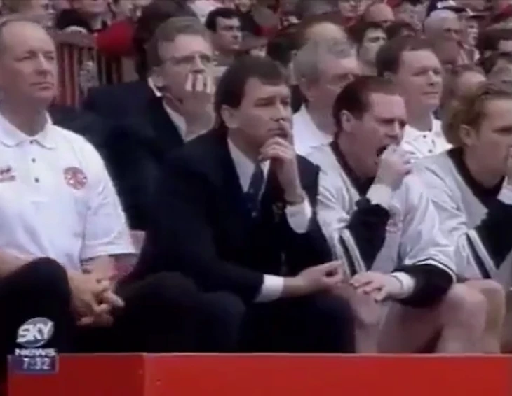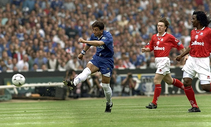 Ну а в 1998 году команды добрались до финала Кубка Лиги на «Уэмбли». Тогда турнир носил название «Кока Кола Кап». «Челси» под руководством Виалли выиграл в дополнительное время благодаря голам Синклера и Ди Маттео (2:0). Тренером «Боро» являлся Брайан Робсон, а его играющим помощником был Пол Гаскойн (зевает во время первого тайма). «Газза» вышел во втором тайме и сразу же отоварил по ногам Дзолу...