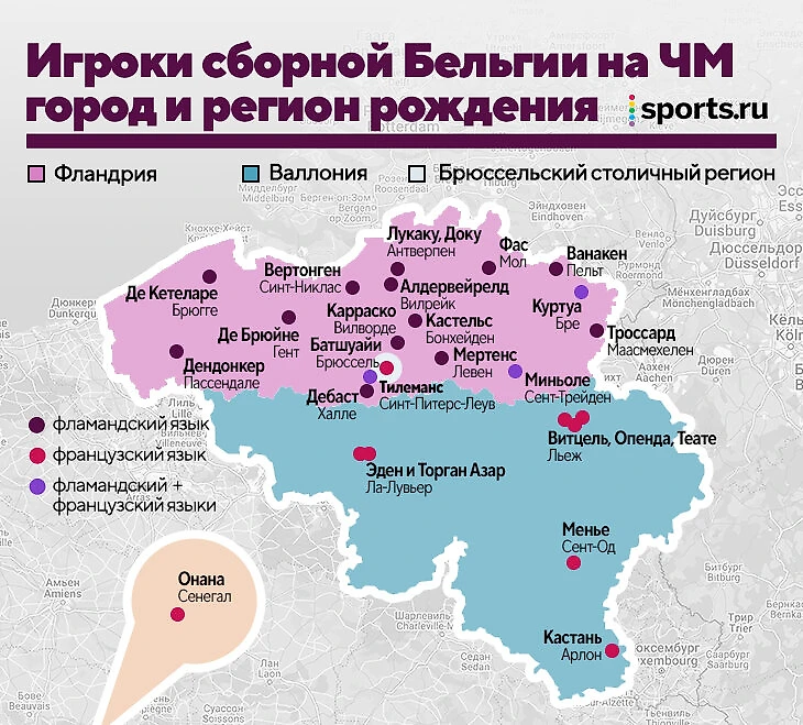 Две трети игроков в заявке сборной Бельгии к ЧМ-2022 выросли на территории Фландрии, что могло бы дать повод жителям Валлонии говорить о несправедливости. Тем не менее футболисты не подают повода для спекуляций. Валлонец Эден Азар, понимая важность демонстрации единства, был ясен: «В сборной я играю с моими бельгийскими коллегами, а не с фламандскими».