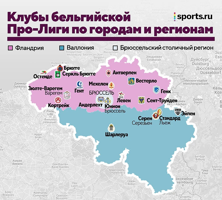 В нынешнем сезоне бельгийской Про-Лиги двенадцать команд из Фландрии, четыре из Валлонии и две из Брюссельского столичного региона. За последние тридцать лет клуб из Валлонии лишь дважды выигрывал чемпионат. Оба раза отличился льежский «Стандард», что в целом отражает неравное экономическое положение двух регионов сегодня: валлонские провинции занимают пять из шести последних мест по ВВП на душу населения во всей Бельгии.