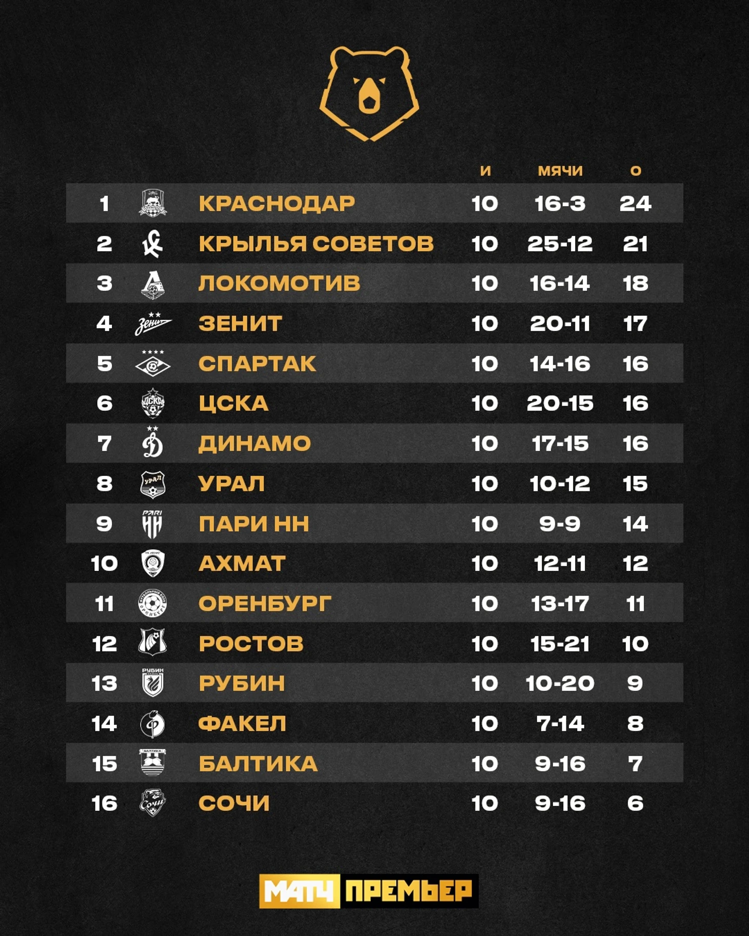 10 туров МИР Российской Премьер-Лиги позади. Этот розыгрыш самый интересный с момента первого чемпионства Семака в Зените. Новые лидеры и приличные отрывы, неожиданные кризисы и провалы. А главное – интрига! РПЛ, очевидно, потеряла в качестве играющих в ней футболистов, но РПЛ не потеряла в желании и самобытности. Лигу интересно смотреть. До зимней паузы еще 8 туров поменяться может всё.