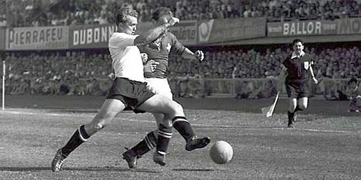 Хаппель во время знаменитой «Жаркой битвы в Лозанне», четвертьфинала чемпионата мира 1954 года против Швейцарии, закончившегося со счётом 7:5 в пользу австрийцев