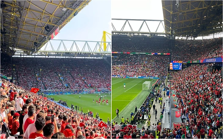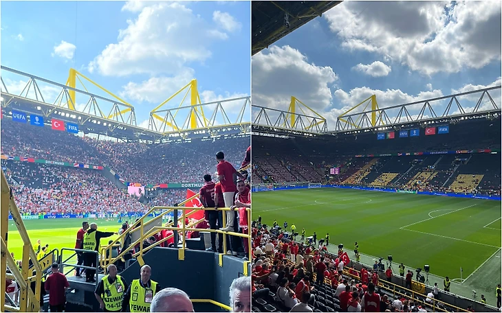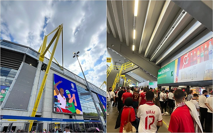 По приезду в Дортмунд мы словно очутились в Стамбуле. Толпы турецких фанатов выходили из вокзала и двигались в сторону фан-зоны и стадиона. Всюду гудели автомобилисты (в основном таксисты), пели песни и кричали болельщики с флагами Турции. Большинство из них это местные жители. Турецкая диаспора – самая многочисленная в Германии. Все проходило дружелюбно и без агрессии. В городах и на стадионе было много полицейских и в плане безопасности мы чувствовали себя спокойно. Я был в майке сборной Португалии и по пути к стадиону пара турецких болельщиков познакомилась с нами. Вот их удивило, когда им ответил, что я из Беларуси. К стадиону мы подъехали на метро. В вагоне ехали одни только турки, они распевали свои песни, один заводил всех граммофоном. Находиться среди них было одно удовольствие.