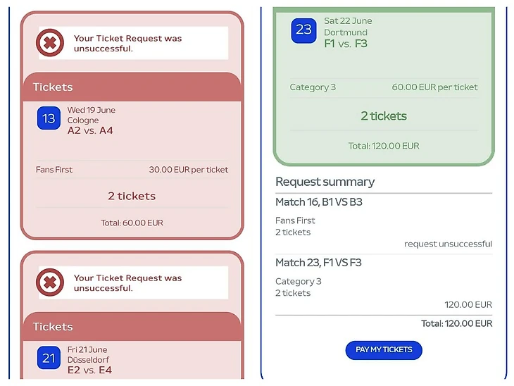 В ноябре пришел результат розыгрыша, в котором выиграл только матч в Дортмунде 22 июня между F1 и F3. Сыграл фактор, что на «Category 3» меньше спрос. Тем не менее, это крутой результат – матч на «Сигнал Идуна Парк»! Оплатил 2 билета и получил чек на почту, сами билеты прислали за месяц до игры. Следующий этап – жеребьевка.