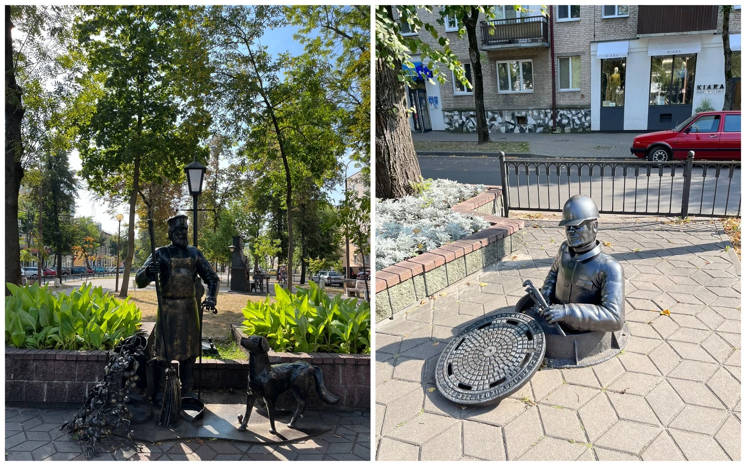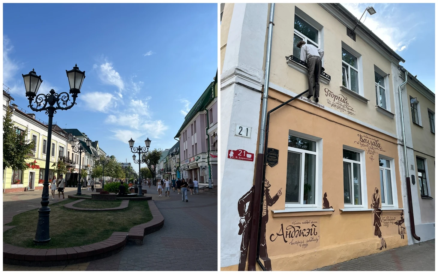 Стоит свернуть от Советской в сторону как попадаешь на тихие жилые улицы с низкими постройками, на которых местами встречаешь интересные инсталляции и скульптуры. Как например, аллея кованных фонарей по ул. Гоголя и композиция «Любовник» на ул. Дзержинского.