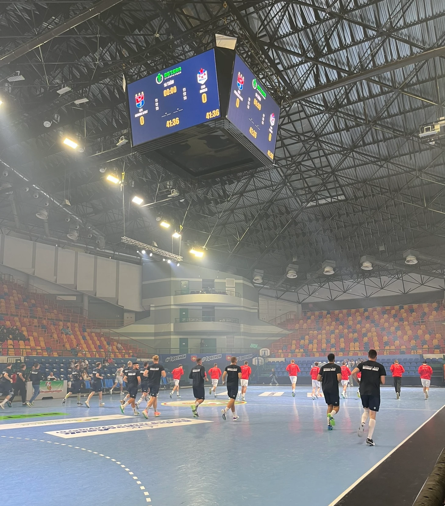 Зрительские места дворца расположены по всему периметру площадки. Две центральные трибуны имеют по 17 рядов в высоту, а небольшие сектора за воротами отведены активным фанатам. Над площадкой установлен внушительных размеров куб с четырьмя экранами. Спортивная площадка, на которой уже активно разминались игроки, была окутана легкой дымкой, что придавало чарующую атмосферу этого вечера.