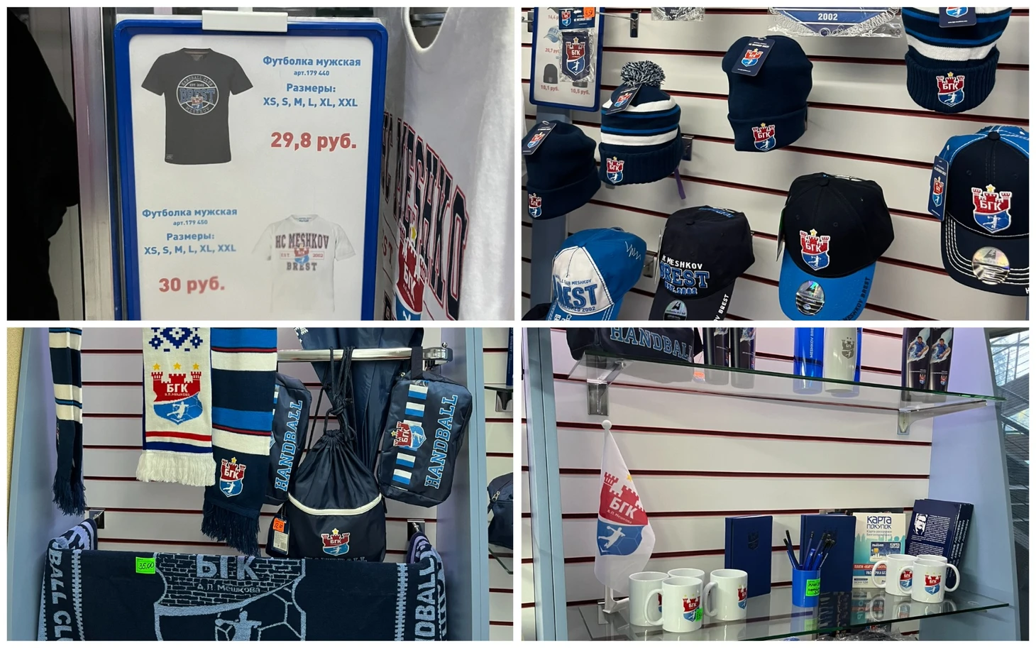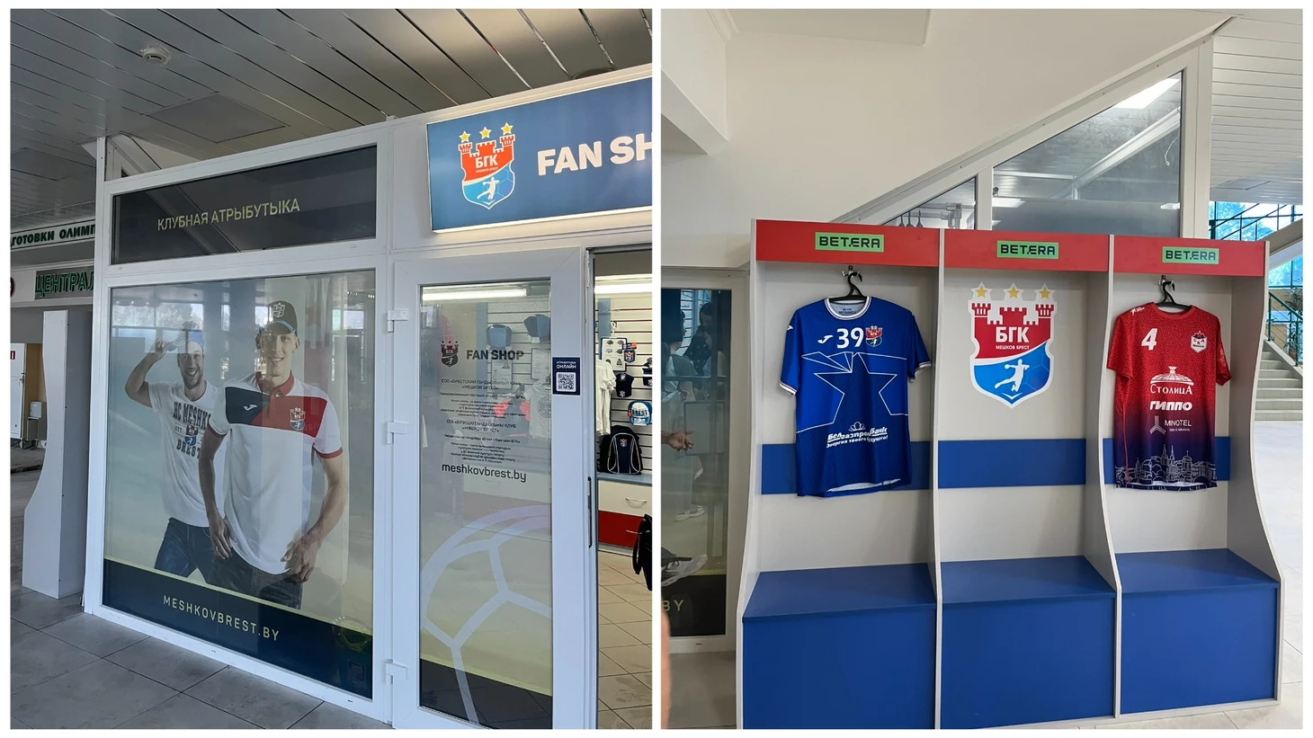Магазин атрибутики работает только в день проведения матчей и представляет собой небольшое помещение, в котором помимо стеллажей с различными клубными вещами нашлось место и примерочной. Ассортимент приятно удивил неплохим выбором: можно собрать весь необходимый набор болельщика. Только вот многие товары заметно утратили актуальность – логотип представлен еще старого образца с одной звездой. На заметку, сейчас над эмблемой БГК висят три звезды.