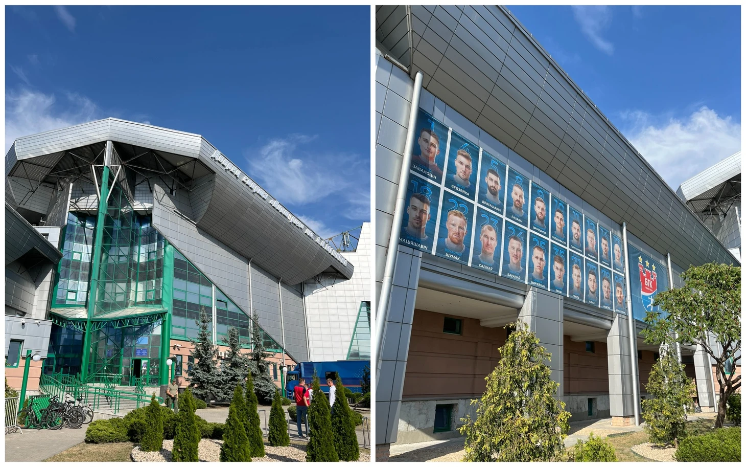 Дворец «Виктория» был открыт в 2004 году и принимает в основном гандбольные поединки БГК «Мешков Брест» и женской команды ГК «Берестье». Вместимость – 3 740 мест. При подходе ко дворцу бросаются в глаза портреты игроков действующего состава. Возле входа меня встретили сотрудники отдела маркетинга БГК и, познакомившись со мной, провели мини-экскурсию по дворцу.