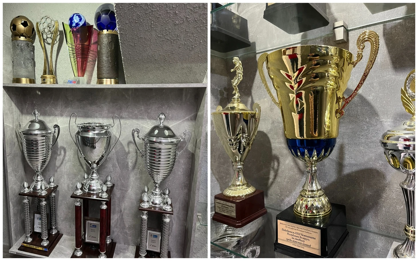 Начинаем со второго этажа – места расположения офиса клуба. Вдоль стены коридора расположены многочисленные кубки, полученные как за национальные и зарубежные первенства, так и за предсезонные. БГК успел за текущий год собрать главные трофеи чемпионата и кубка Беларуси, SEHA Gazprom League (Дивизион Восток) и летнего финала четырех общей SEHA Gazprom League.