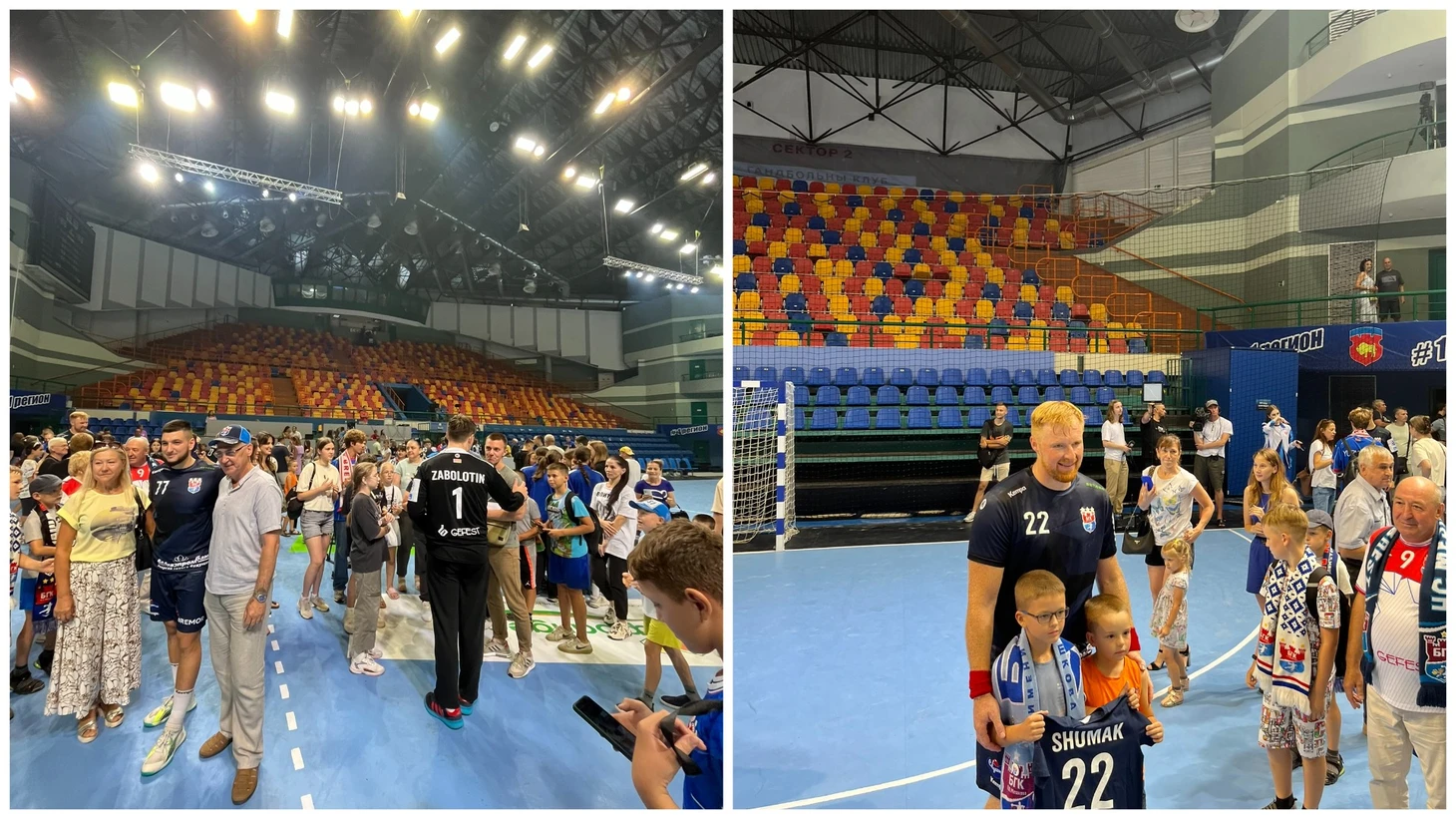Гандбол – игра динамичная, с изобилием моментов и заброшенных мячей. Практическая каждая атака завершается взятием воротом или блистательным сейвом вратаря. Публика «Виктории» эмоционально реагирует на каждое удачное действие своей команды и несправедливые (по их мнению) судейские решения. Заводит речовки и не дает скучать «голос» арены и заряжающие в барабаны небольшие торсиды фанатских секторов обеих команд (из Минска приехал автобус болельщиков «СКА»).