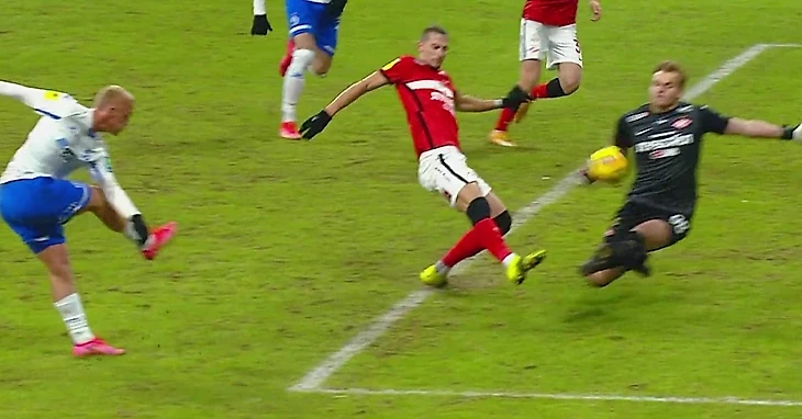 Второй тайм не уступил, а даже превзошёл своего огненного брата тайма первого. Но главное отличие было в том, что "Спартак" начал забирать подборы у чужой штрафной, что сразу увеличило давление на защиту "Динамо". Итогом же стал прострел Маслов с отскоком в руку Ордеца. Ситуация, возможно, и спорная, но такой момент недавно мы видели в исполнении Кузяева - пенальти на итог. Карасев же изучил момент и.... поставил на точку. Вот уж удивительно в наше ВАРовское время. Соболев точен, а Маслов реабилитирован.