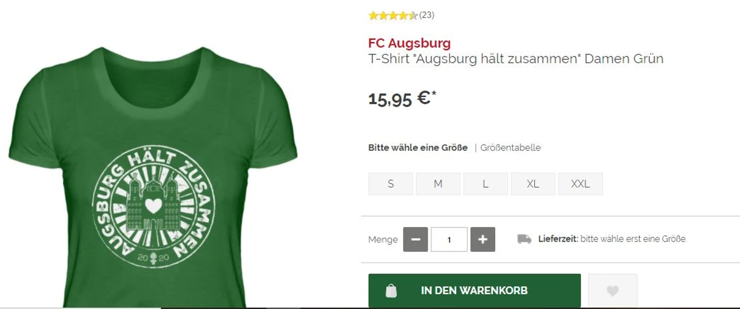 3) Клубом были специально изготовлены футболки, на которых изображен город и слоган «Аугсбург вместе». Вся прибыль от футболок, которые были раскуплены в течение получаса, была направлена на социальные городские проекты.