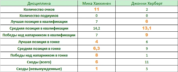 Джонни Херберт – 14 гонок, 5 набранных очков.
