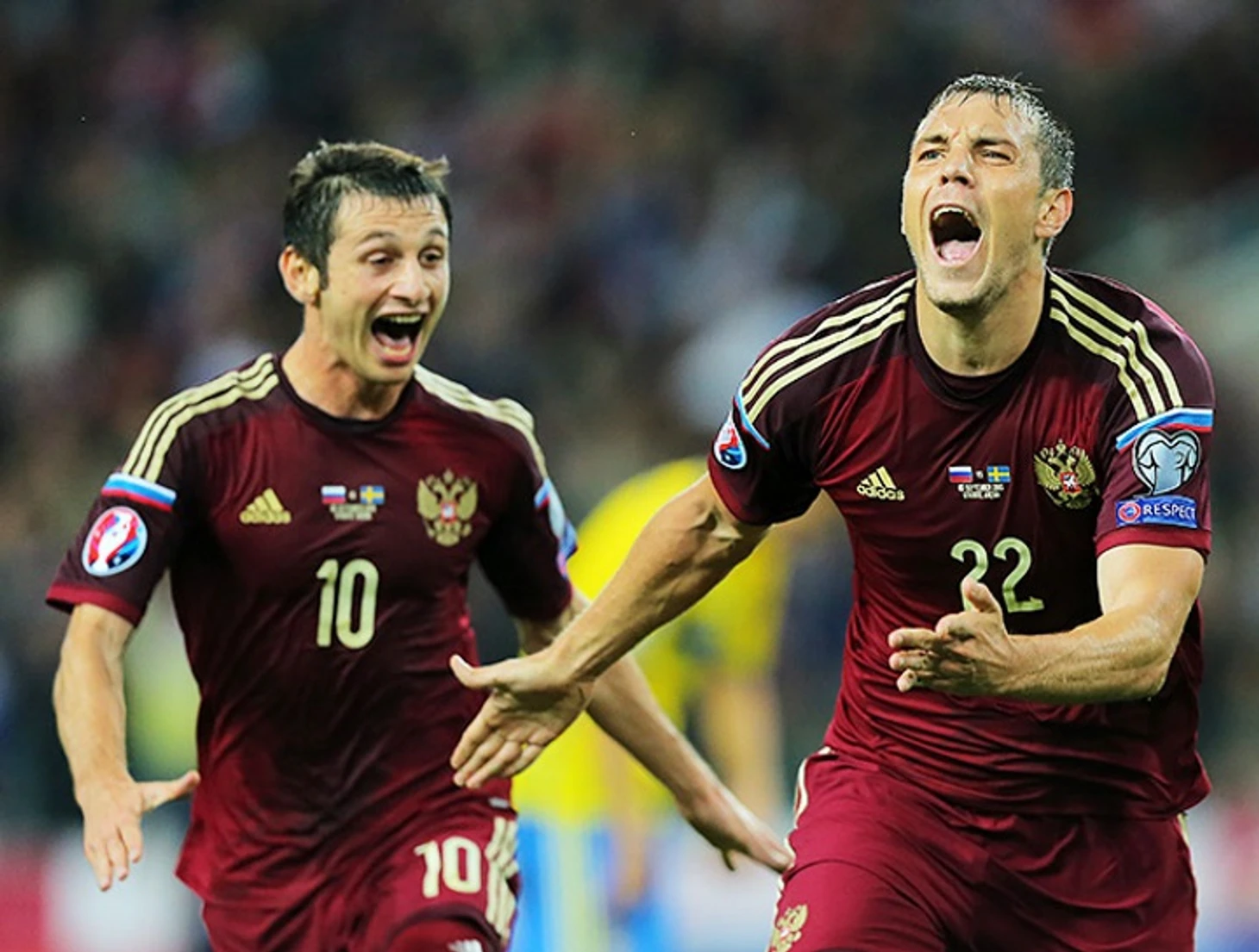 Уже в следующем году Adidas всё-таки вернулся к насыщенному бордовому цвету с золотыми элементами. Этот комплект пришелся на эпоху Фабио Капелло: успешный отбор к чемпионату мира, полный провал на самом мундиале и закат итальянца в России. В этой форме национальную команду принял Леонид Слуцкий, чтобы вывести на Евро-2016. На самом турнире команда сыграла в обновленном варианте в уже привычной цветовой гамме.