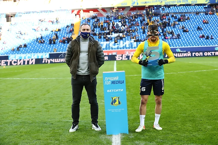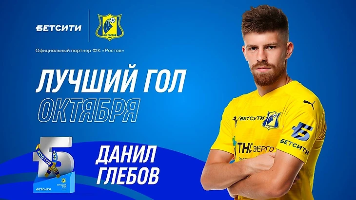 Приз «БЕТСИТИ — лучший гол октября» Данилу Глебову вручил директор департамента аналитики БЕТСИТИ Алексей Положенцев перед матчем 15-го тура РПЛ «Ростов» — «Уфа» (2:2). Для капитана «Ростова» это уже вторая награда БЕТСИТИ в нынешнем сезоне. Его гол также был признан лучшим в сентябре.
