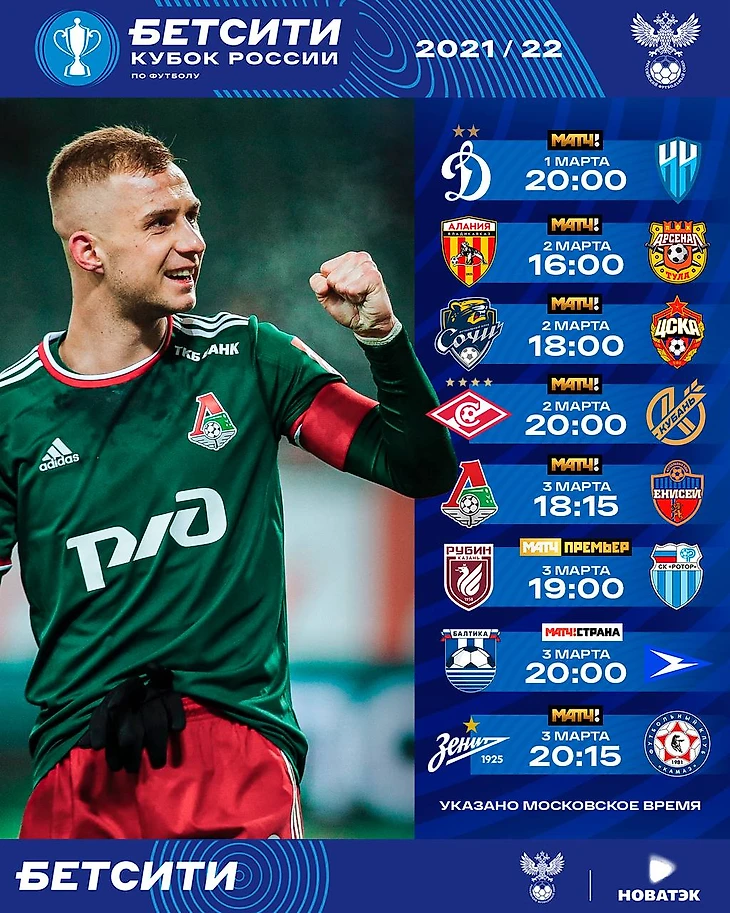 Матчи 1/8 финала БЕТСИТИ Кубка России стартуют 1 марта.