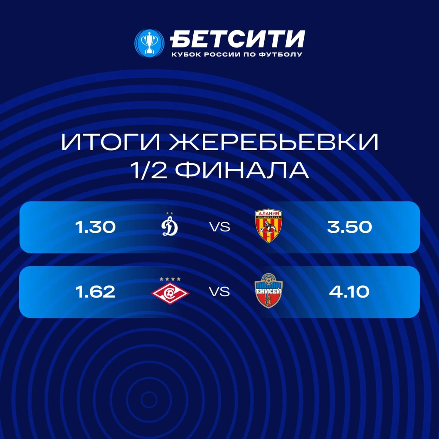 Завершилась жеребьевка 1/2 финала БЕТСИТИ Кубка России.