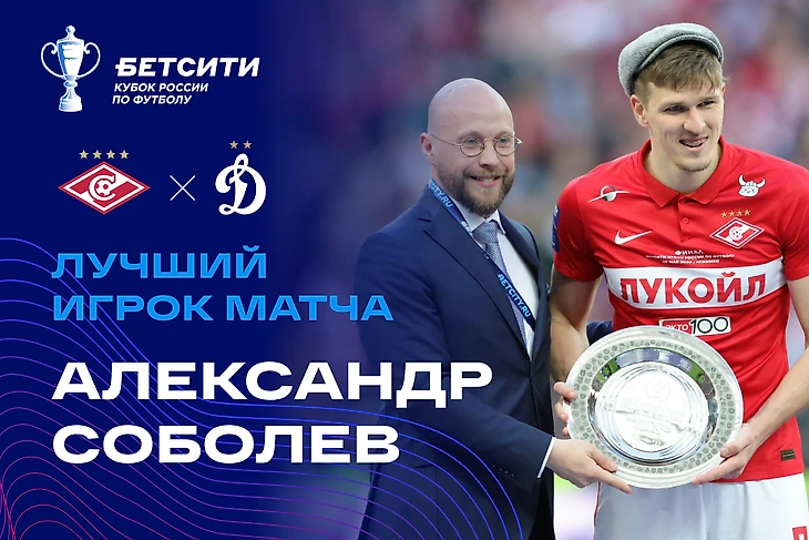 Александр Соболев признан лучшим игроком финала БЕТСИТИ Кубка России между «Спартаком» и «Динамо» (2:1).