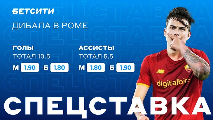 Сколько голевых пасов будет у Дибала в «Роме»? На предстоящий сезон предлагается тотал в 5.5 результативных передач от аргентинца. ТБ идет за 1.90, а ТМ — за 1.80.