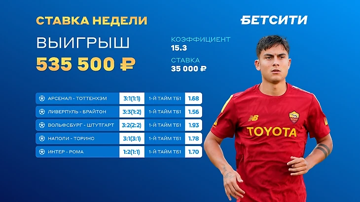 Гол Дибалы принес игроку БЕТСИТИ 535 500 рублей