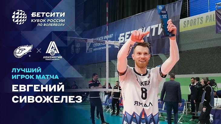 Доигровщик «Факела» Евгений Сивожелез признан лучшим игроком матча 1/2 финала БЕТСИТИ Кубка России по волейболу между «Факелом» и «Локомотивом».