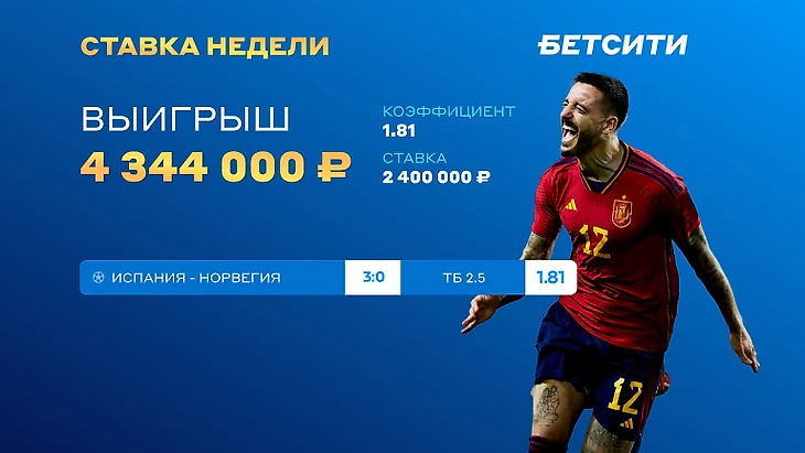 4.3 млн рублей получил игрок БЕТСИТИ благодаря невероятному дебюту Хоселу за Испанию
