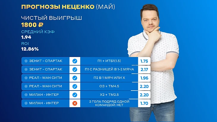 В мае Александр Неценко сделал 14 прогнозов — и верно предсказал восемь исходов.