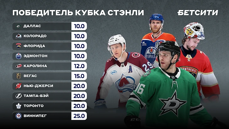8 октября стартует новый сезон НХЛ. В первом матче действующий обладатель Кубка Стэнли «Флорида» примет «Чикаго». «Пантерз» взяли трофей дважды подряд и входят в четверку фаворитов нового розыгрыша лиги. В этом списке компанию им составили «Даллас», «Колорадо» и «Эдмонтон». Шансы каждой из команд на титул оцениваются коэффициентом 10.0.