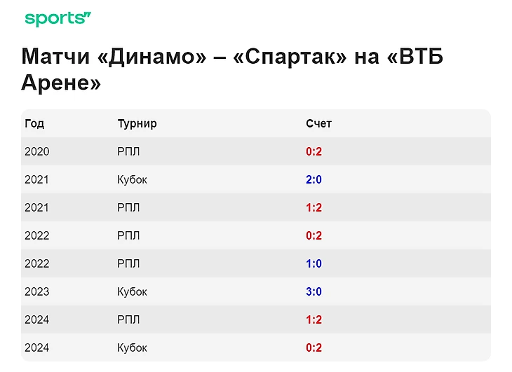 Интересно, что и исход в этих играх не менялся кардинально – как правило, команда доводила матч до победы, если вела в счете. Исключения – два: весной 2021-го и 2024-го «Спартак» обыгрывал «Динамо» по 2:1, уступая по ходу матча.