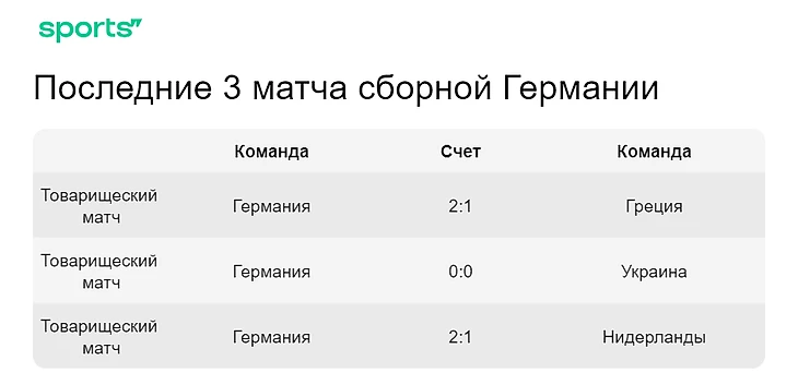 Германия проигрывала стартовые матчи на трех последних крупных турнирах, но в этот раз немцы – хозяева Евро и для них этот чемпионат – особенный. На пути к финальной части Евро сборная была освобождена от отборочных игр, поэтому судить о ее форме можно только по товарищеским матчам. Команду знатно штормило: в последних 15 встречах только 6 побед. В 6 матчах немцы проиграли, еще 3 игры закончились вничью. В заключительной игре перед Евро-2024 немецкая сборная победила Грецию со счетом 2:1: проиграла первый тайм, но во втором с помощью перестановок Юлиана Нагельсманна перевернула игру.