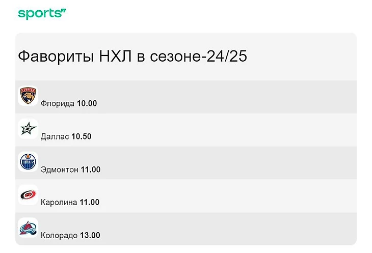 Главная аномалия в том, что «Флорида» летом-2023 играла в финале, но все равно не убеждала аналитиков в своей силе. Например, значительно выше в рейтинге стоял «Нью-Джерси» (10.00), отставший в итоге на 29 очков от «Пантерс» в регулярном чемпионате. А преимущество над всеми получили «Колорадо» и «Каролина».