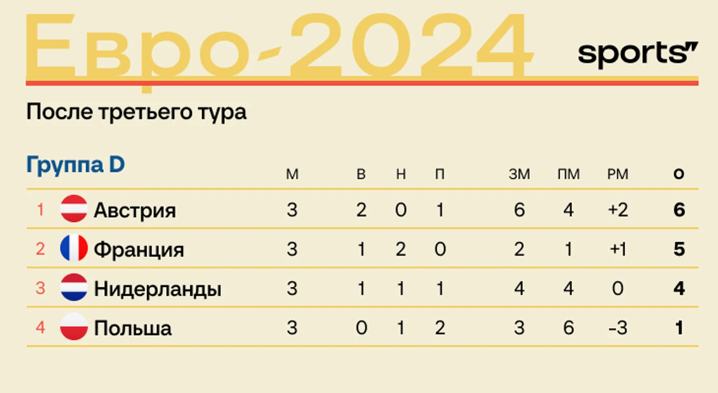 Итоги группы D: Австрия выигрывает за 10.00, Мбаппе оживает в гонке бомбардиров