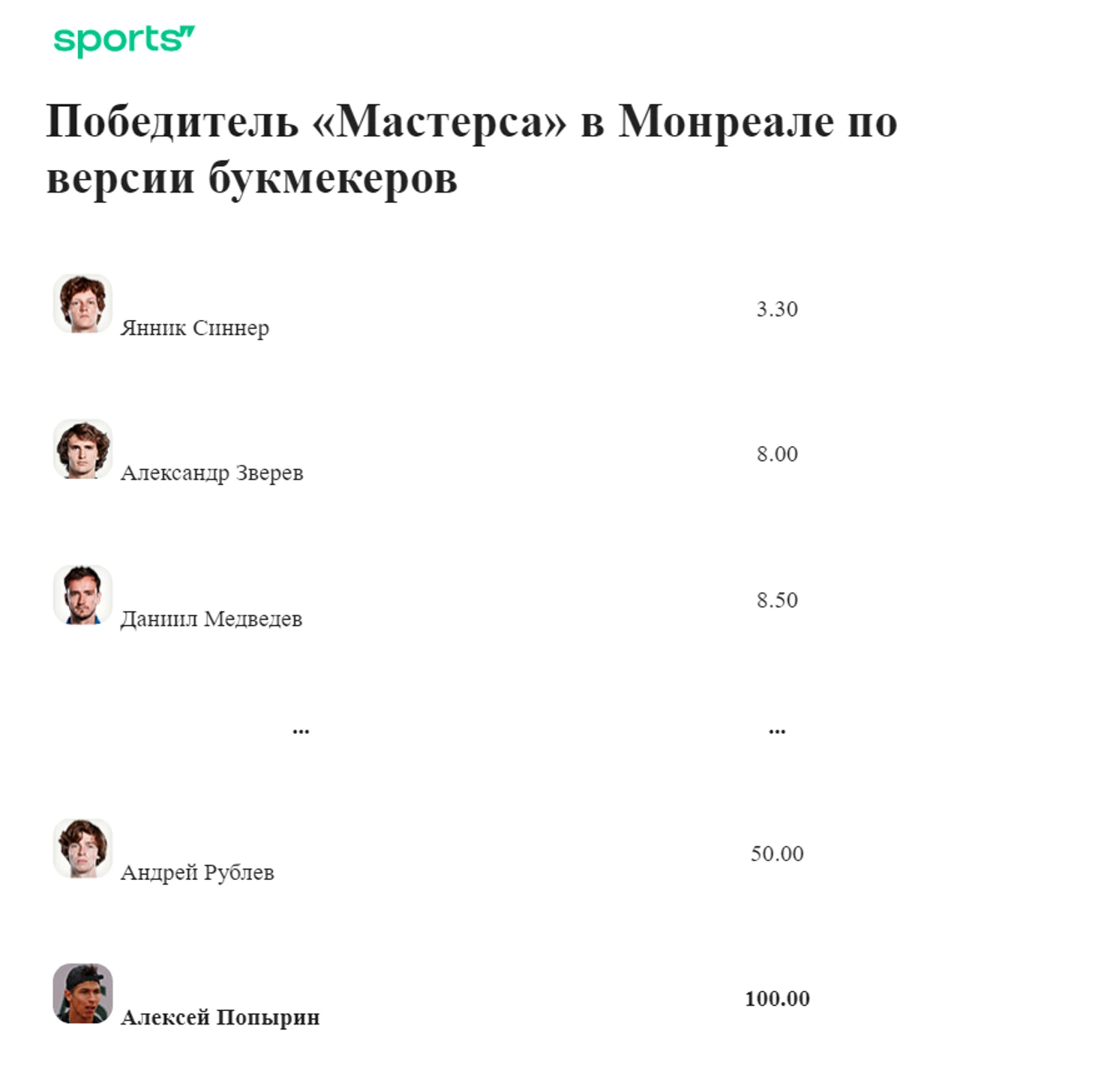 Рублев проиграл финал, в котором букмекеры его не ждали. А на победителя «Мастерса» в Монреале зашел кэф 100!