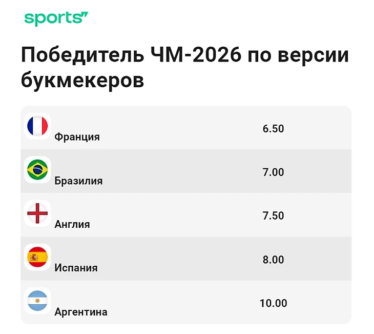 Контракт Дешама со сборной действует до 2026-го, то есть он будет возглавлять Францию на чемпионате мира. Букмекеров это не беспокоит – они котируют французов главными фаворитами турнира.