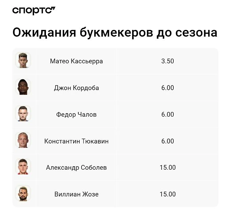 Самый удивительный факт – отсутствие в первых линиях Манфреда Угальде. Костариканца добавили только после пятого тура, хотя претендентом все еще оставался Виллиан Жозе. Букмекеры долгое время полагали, что бразилец станет основным нападающим «Спартака».