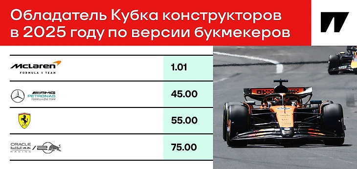 Букмекеры все еще держат «Макларен» в линии на победу в командном зачете – с кэфом 1.01. Однако интереснее наблюдать, как двигаются команды в рейтинге по ходу сезона. «Мерседес» стабильно держится в топ-3, а вот «Ред Булл» и «Феррари» периодически меняются местами. Например, неделю назад «Феррари» шел четвертым, а подиум Леклера в Монако вернул команду в тройку фаворитов.