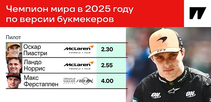 Сближение Пиастри и Норриса в личном зачете сразу же отразилось на коэффициентах на чемпионство. Последний раз пилоты «Макларена» так плотно стояли перед гонкой в Саудовской Аравии – именно тогда Оскар стал новым фаворитом на титул.