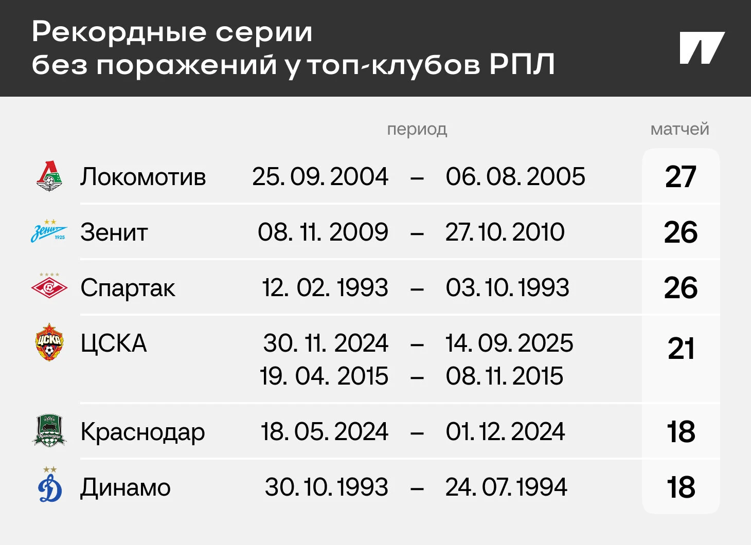 Москвичи стартовали с четырех побед, но далее в пяти матчах подряд делили очки. Были близки к ничьей и в противостоянии с «Рубином» (1:0) – у казанцев отменили гол в концовке встречи. Любопытно, что «Локомотив» подобрался к историческому рекорду «Динамо»: в 1998-м бело-голубые делили очки с соперниками семь раз подряд.
