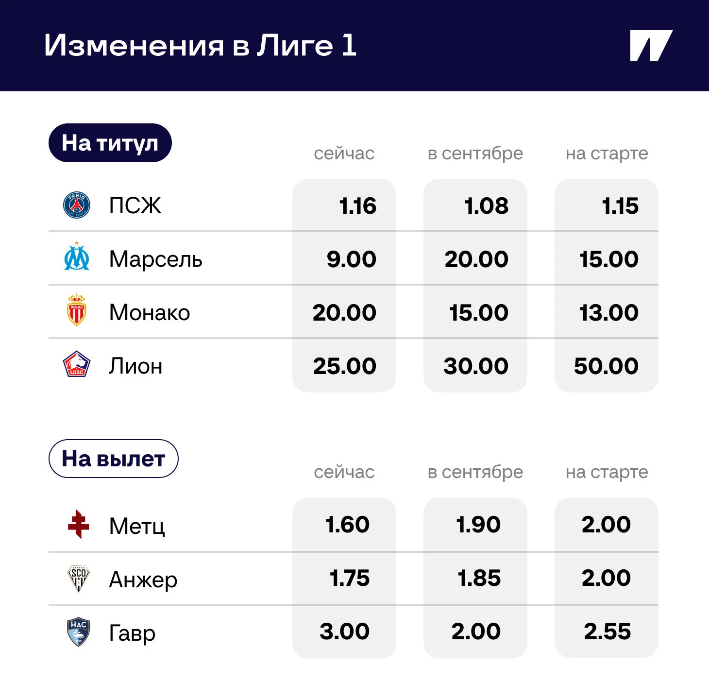 Есть несколько любопытных моментов: в АПЛ сменился фаворит, в Бундеслиге – тотальное доминирование, в Серии А – самый плотный чемпионат, а во Франции все близко в таблице, но нет интриги по коэффициентам. Смотрим подробнее.