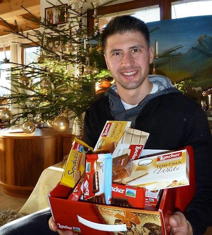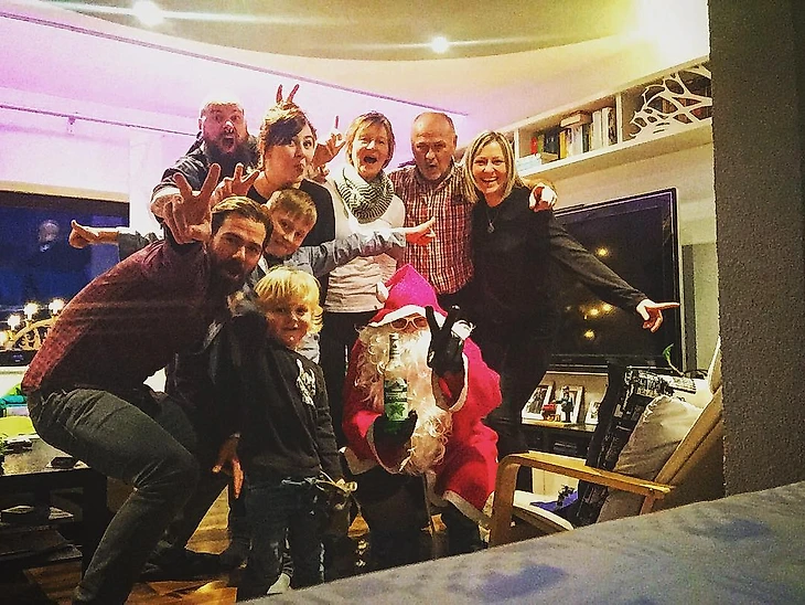 Большая семья Михаэля Рёша во главе с самим биатлонистом весело отмечают Рождество.