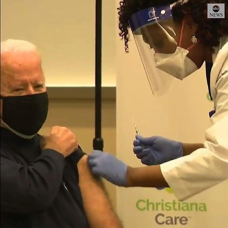 Черная медсестра в белом халате и в белой маске делает инъекцию белому президенту в черном свитере и черной маске. Черно-белая магия момента. Есть ли где-то здесь расизм? Для спортсменов инъекции препаратов являются допингом (запрещенный метод). Интересно, как будут выкручиваться.