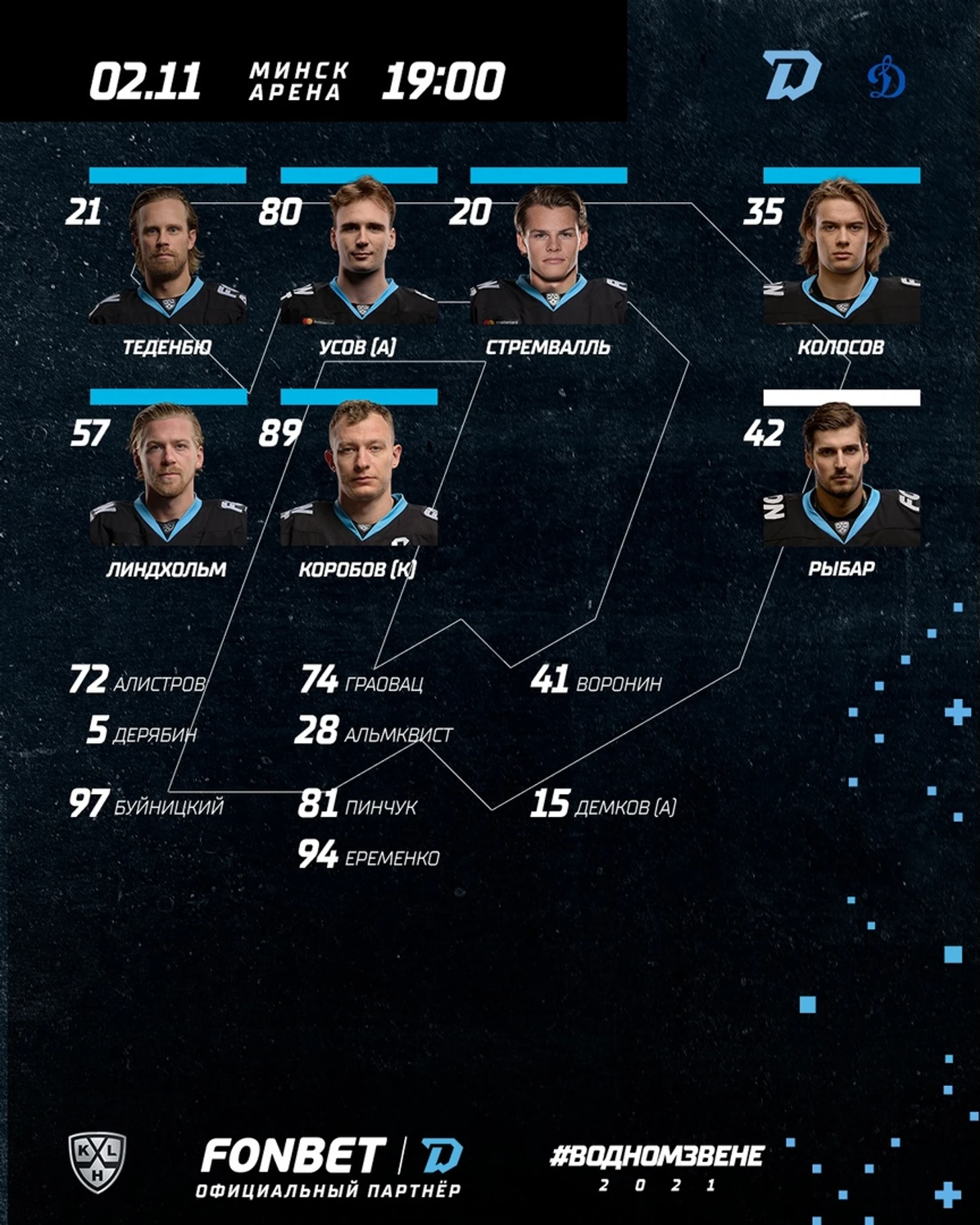 На этом проблемы «зубров» не закончились. Уже на предматчевой разминке получил микротравму паха едва успевший вернуться в строй защитник Илья Шинкевич, а нападающий Роман Горбунов повредил плечо. Проблемы со здоровьем сразили 12 минчан – в ростере на матч с москвичами набралось всего 14 полевых игроков и два голкипера. Так он выглядел.