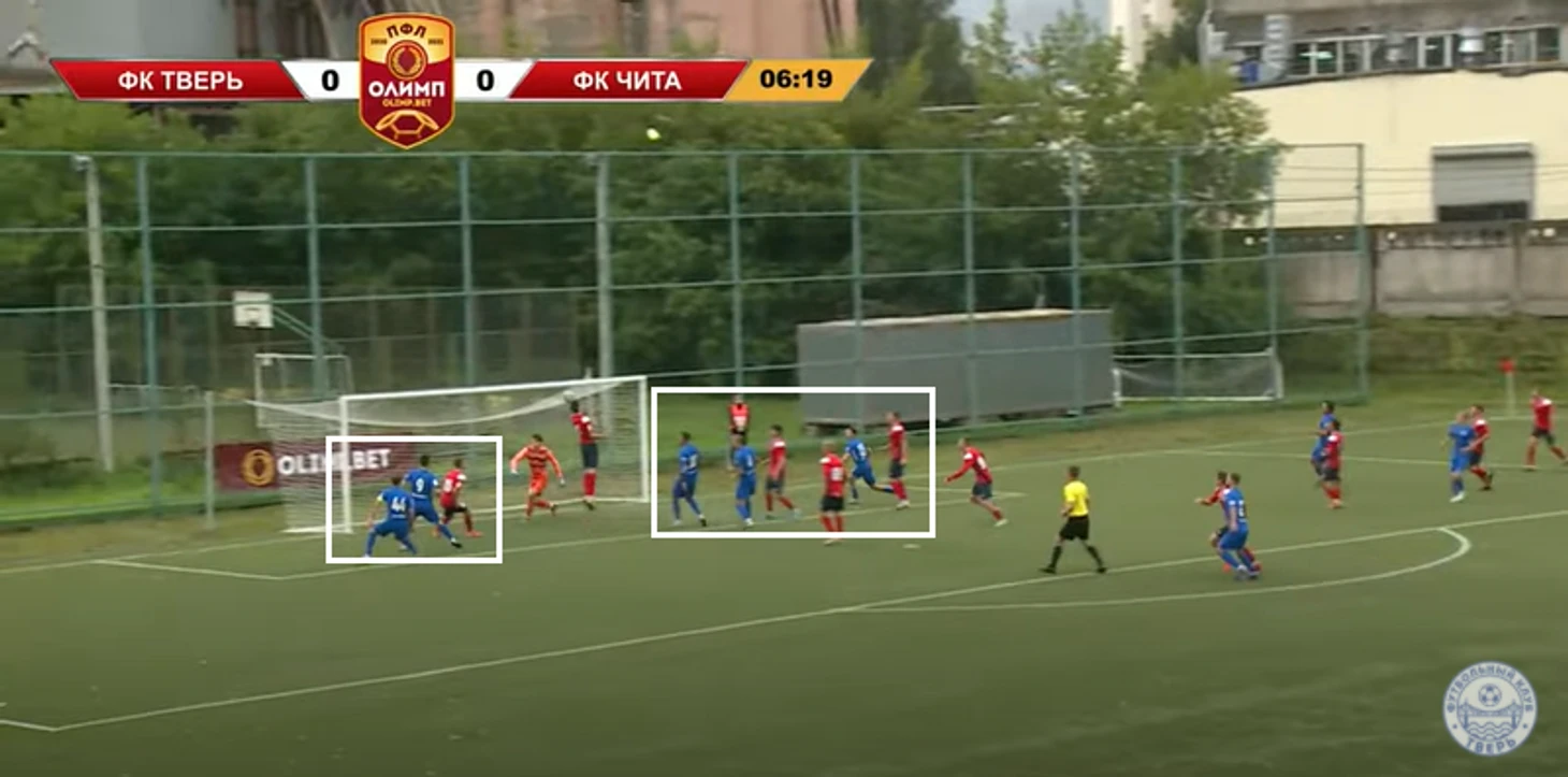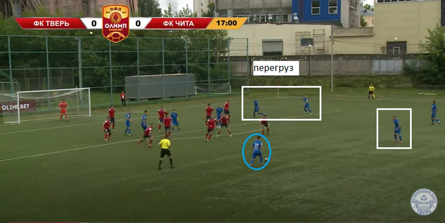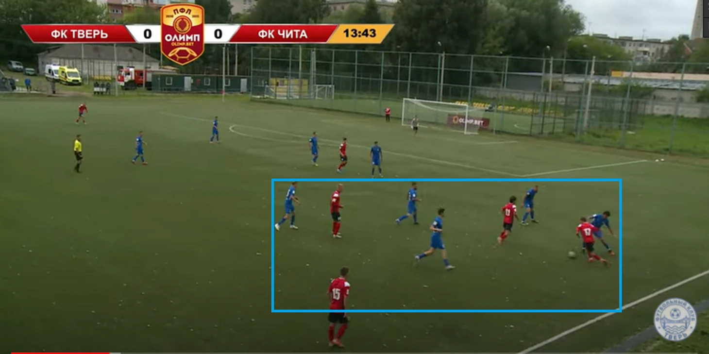 Игроки « Читы» с трудом реагировали; еще по первому матчу « Твери» в ПФЛ было видно, что команда старается иметь минимум 1 в 1 в штрафной: