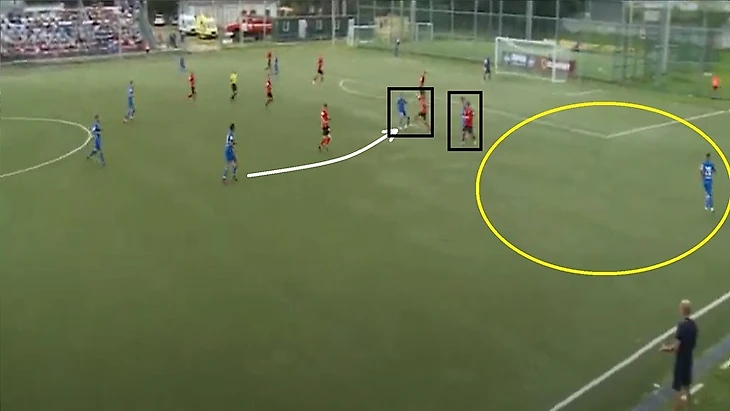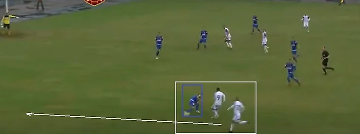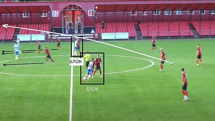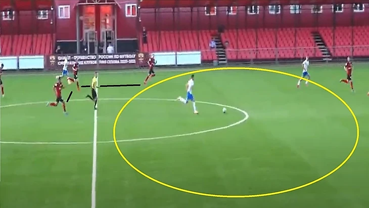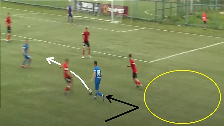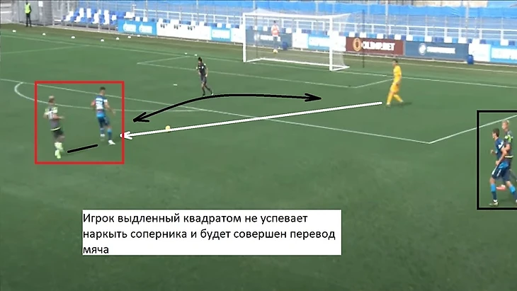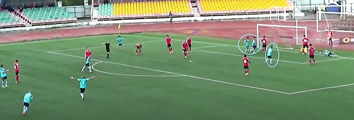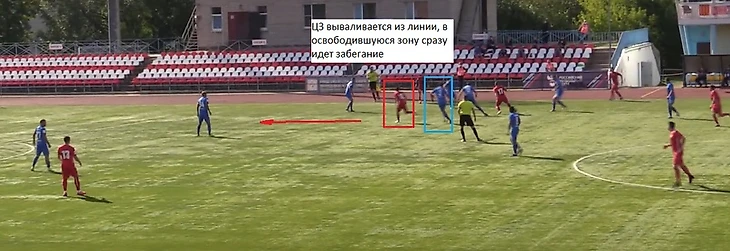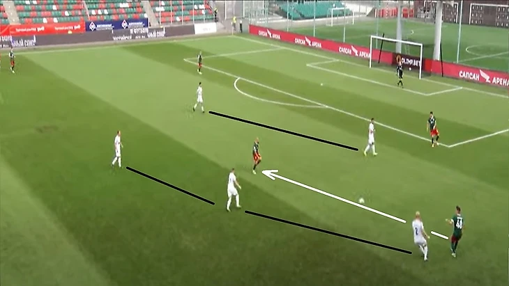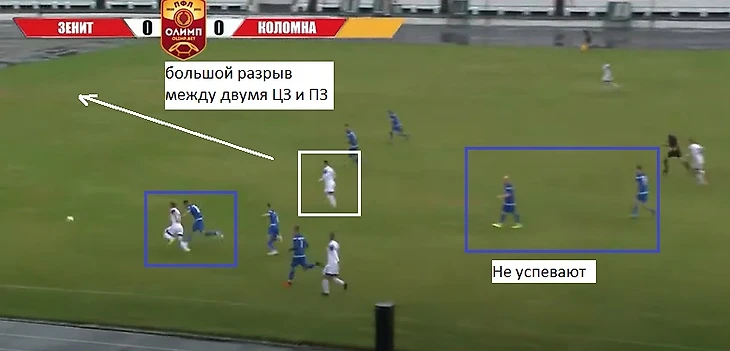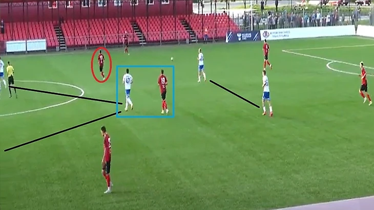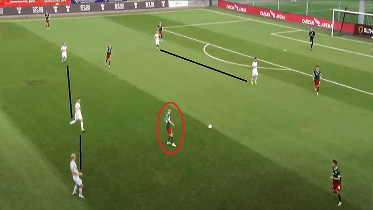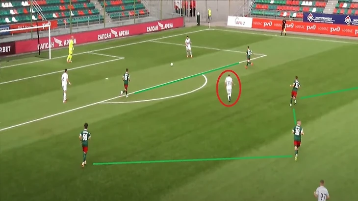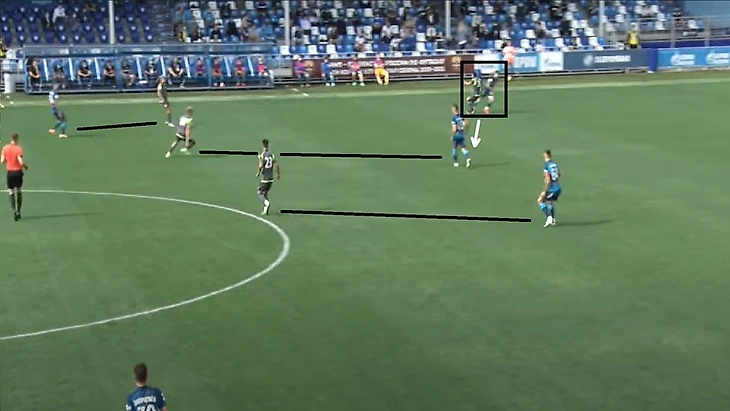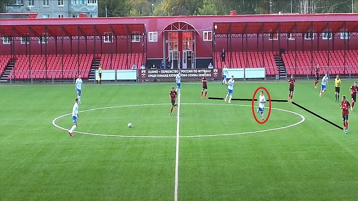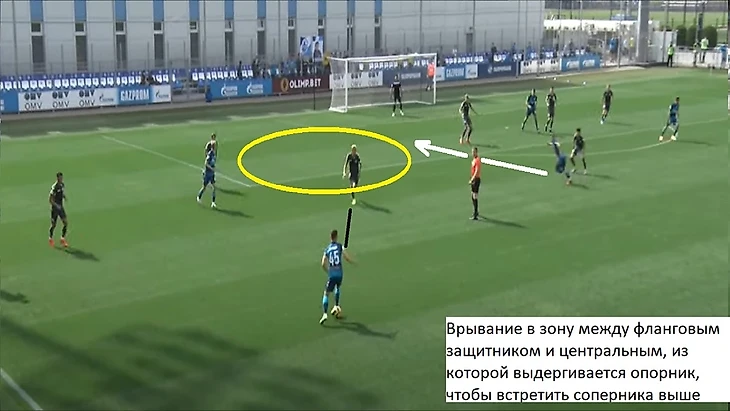 Также 47 номер «Ленинградца» часто освобождал коридоры между крайним защитником и центральным защитником, за счет подобного движения.