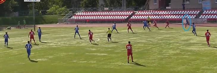 Евгений Харченко — потрясающе. В ПФЛ, где мало умного футбола и хотя бы каких — то попыток открывании, Харченко удивляет выбором позиции и умением открываться. Это и сыграло роль — опережение ЦЗ и снова забитый мяч.